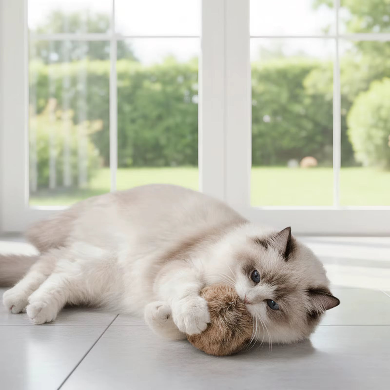 The plush rabbit fur texture closely resembles small prey, encouraging stalking, pouncing, and natural predatory play. This tactile realism keeps cats engaged and promotes healthy exercise patterns.